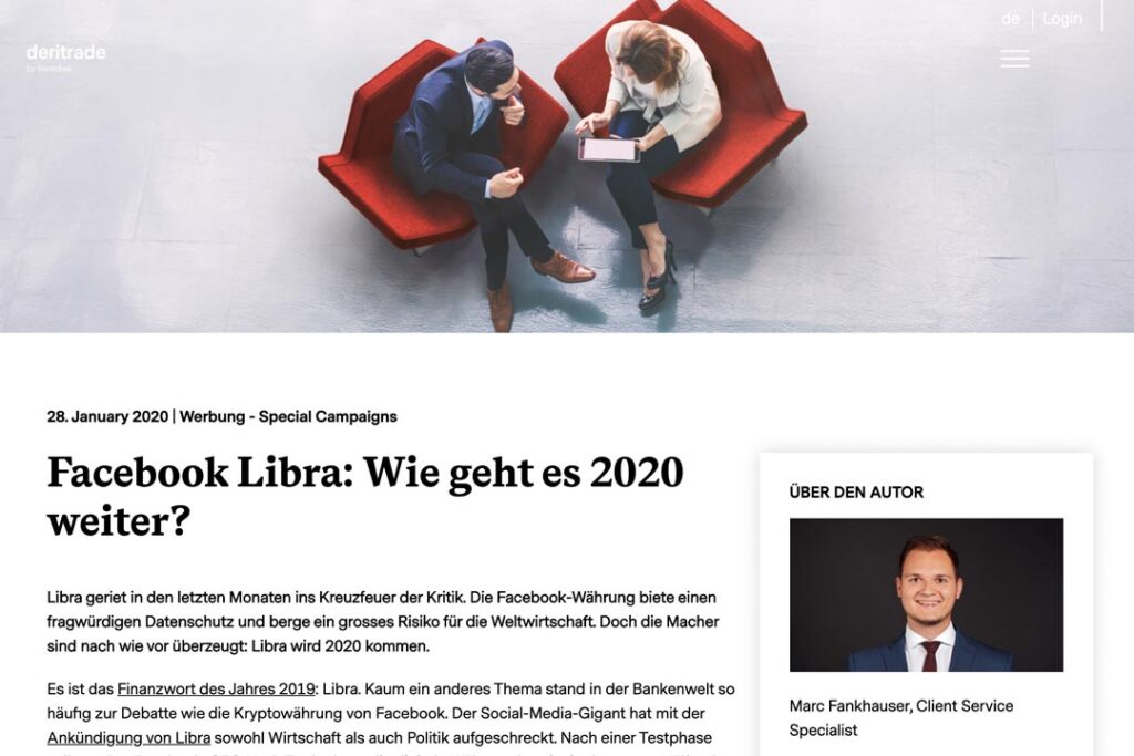 Meinen ersten Berührungspunkt mit deritrade hatte ich während meiner temporären Anstellung als Content Marketing Manager bei Vontobel Investment Banking. Daraus entstand eine langfristige Zusammenarbeit in Form von der Betreuung verschiedener Kanäle.